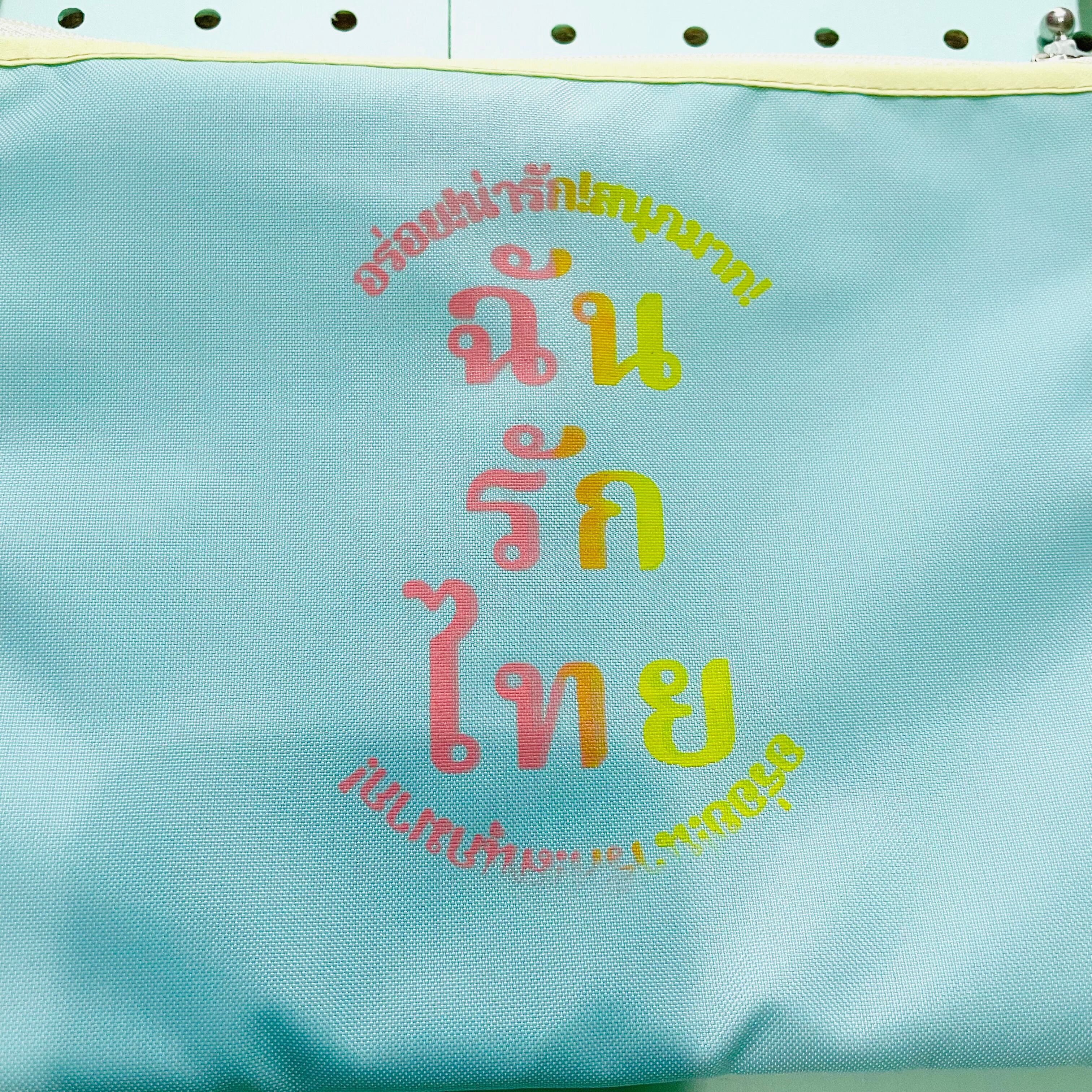 サーモンピンクとイエローのタイ語がグラデーションプリントしてあります。
