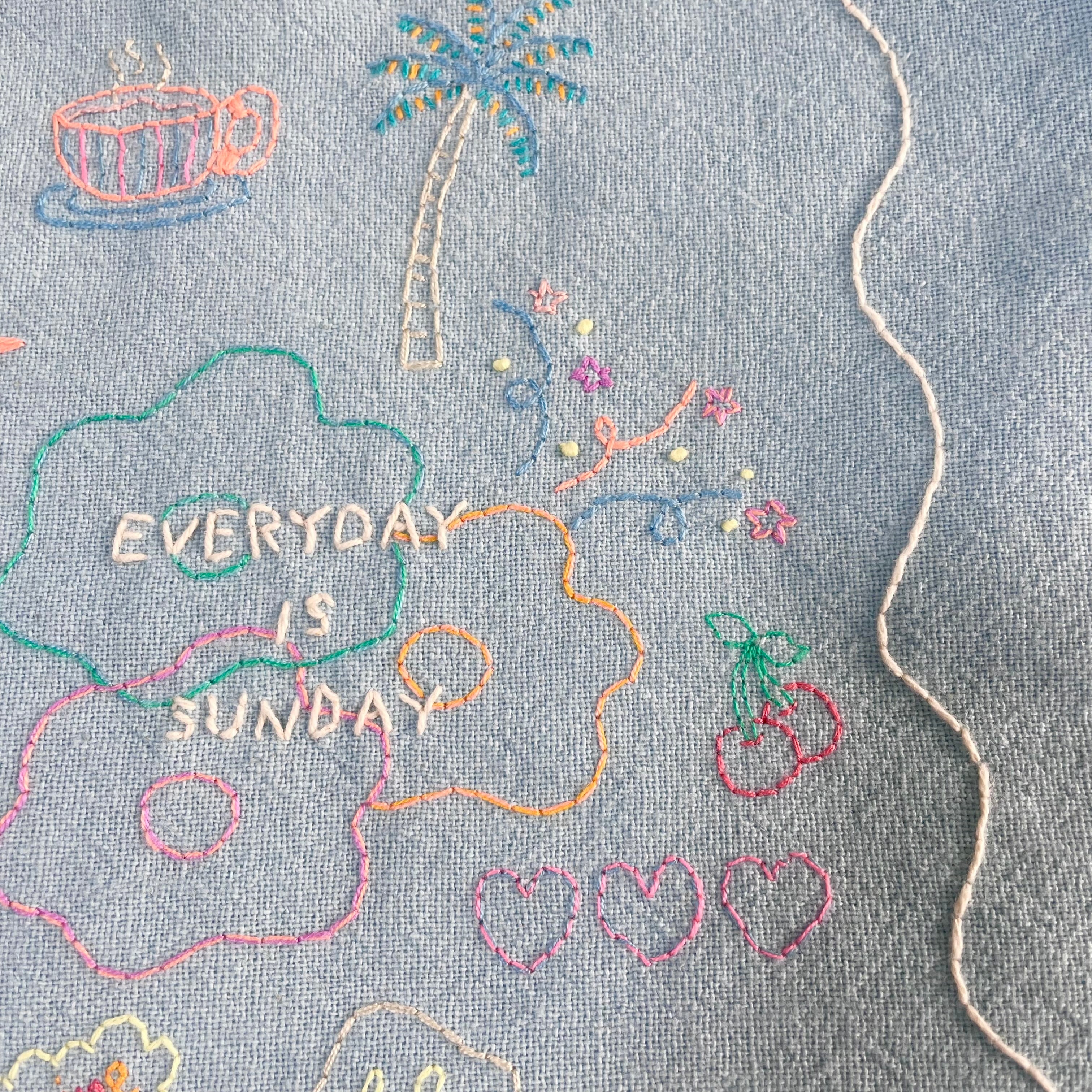 ライトブルーがかわいいチェンマイのコットン生地に丁寧に手刺繍したトートBagです。