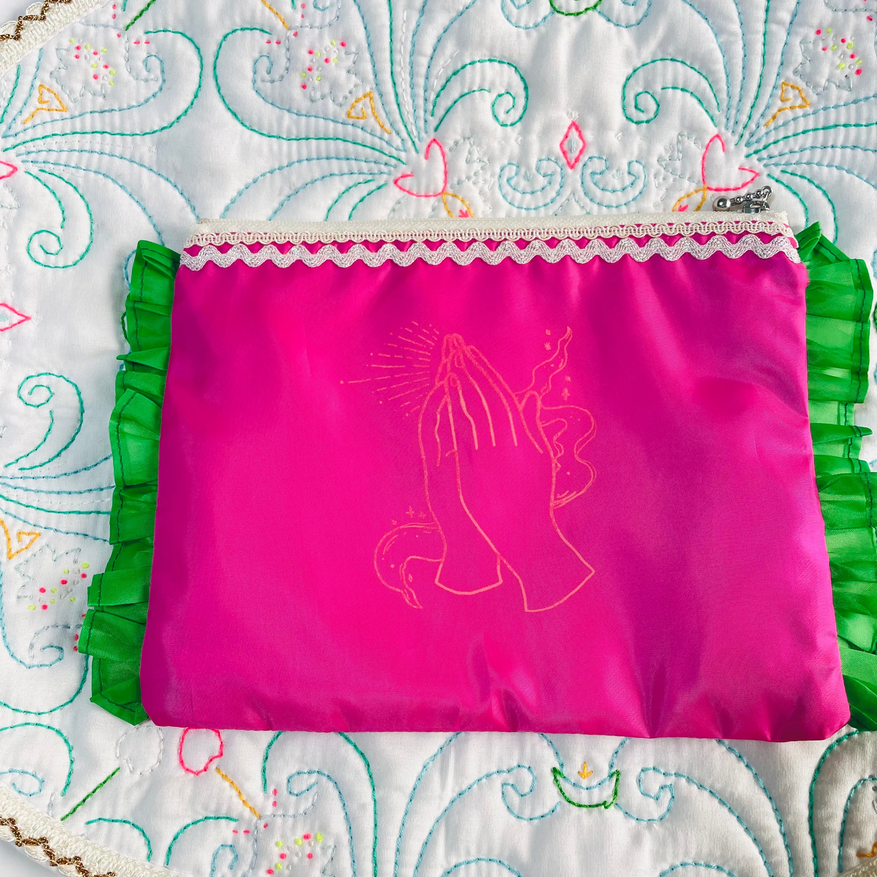 両サイドには別カラーのポリエステル生地で作ったフリルが付いてカラフルで軽いです。