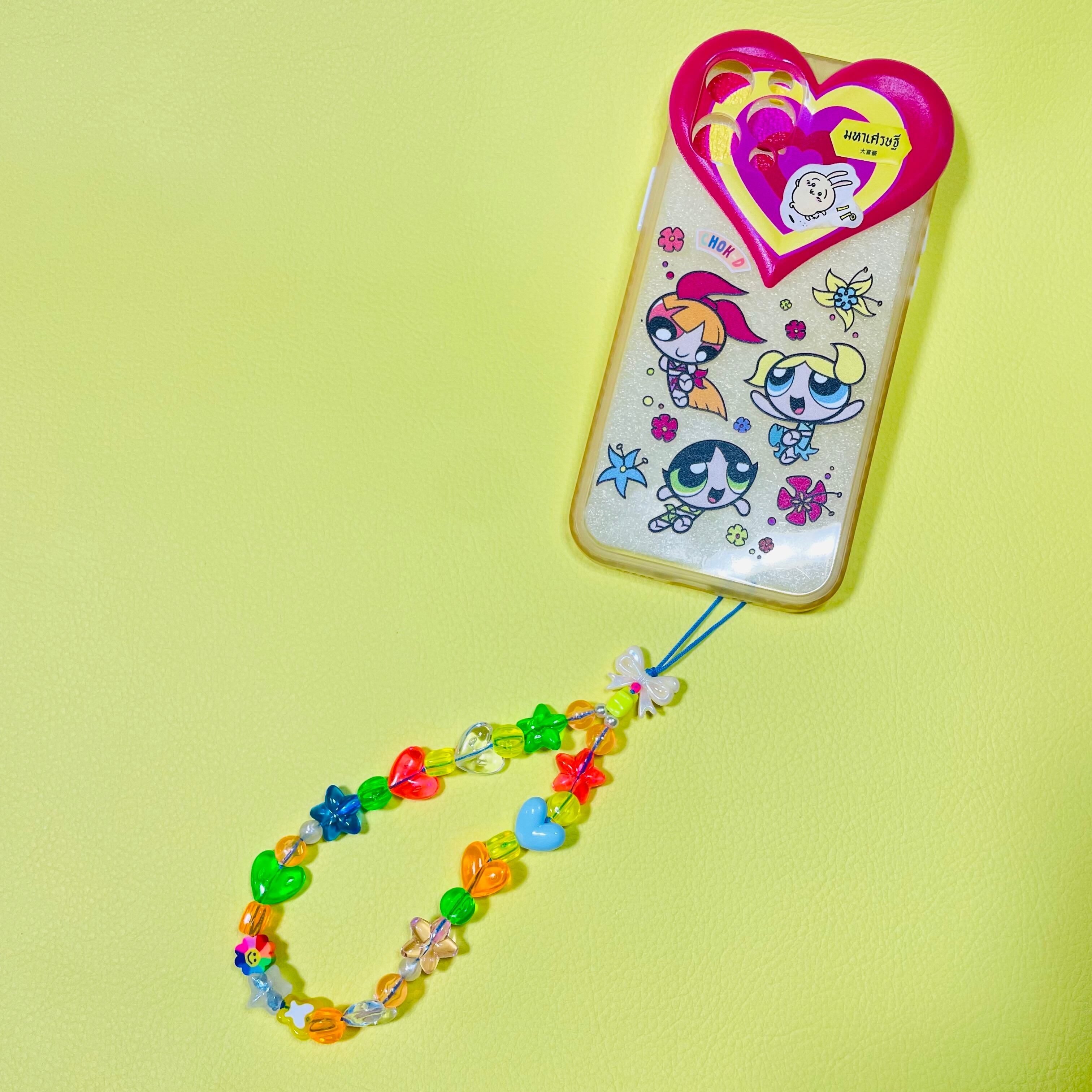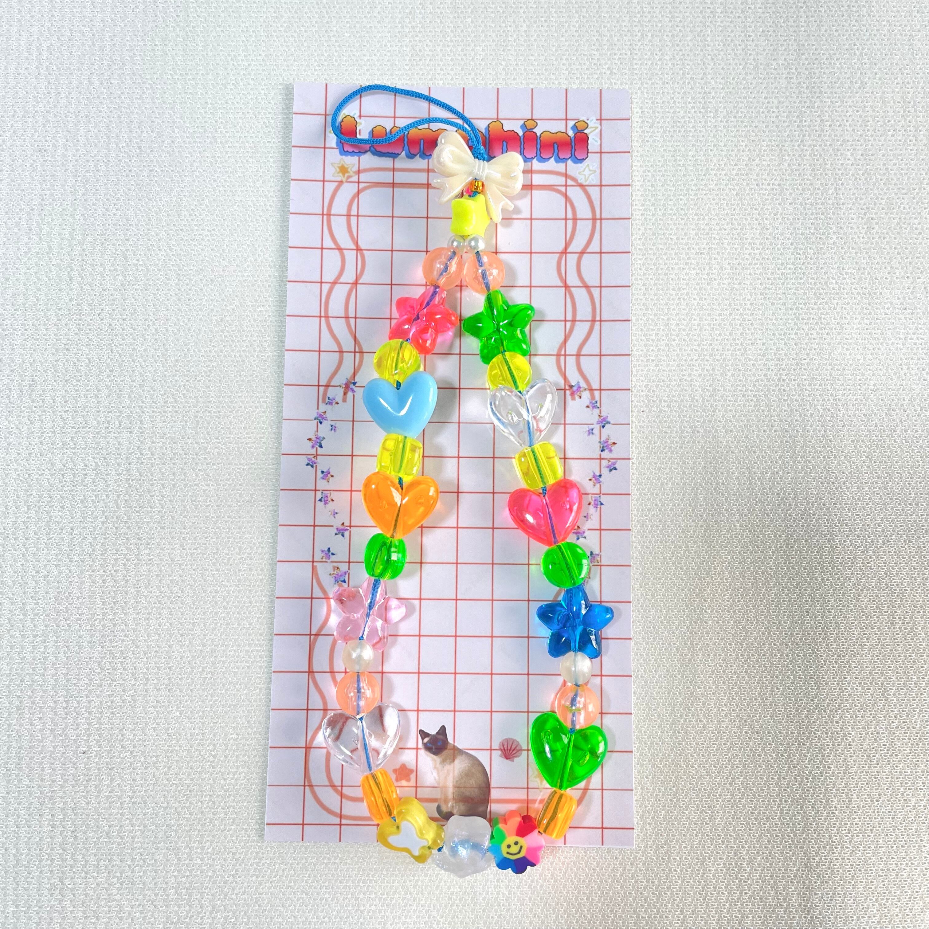 カラフルなビーズ手元で揺れるたび、スマホを手に取る瞬間にふっと口角が上がるような、ユーモアのあるデザインの特別なストラップ。