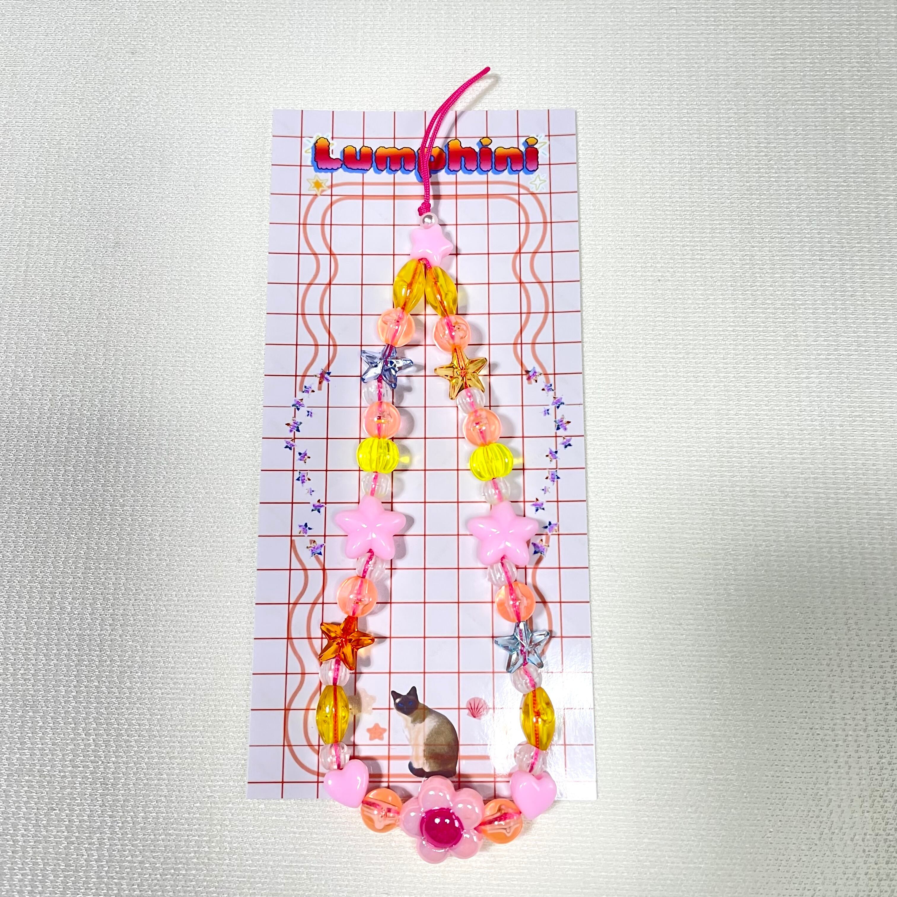 カラフルなビーズ手元で揺れるたび、スマホを手に取る瞬間にふっと口角が上がるような、ユーモアのあるデザインの特別なストラップ。