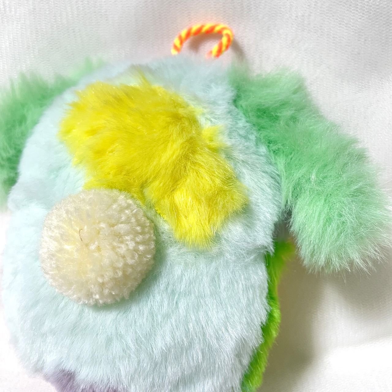 後ろ姿は一転して、爽やかソーダのようなミントグリーンのボディに、ビタミンイエローのアクセント。かわいいポンポンしっぽが付いています。