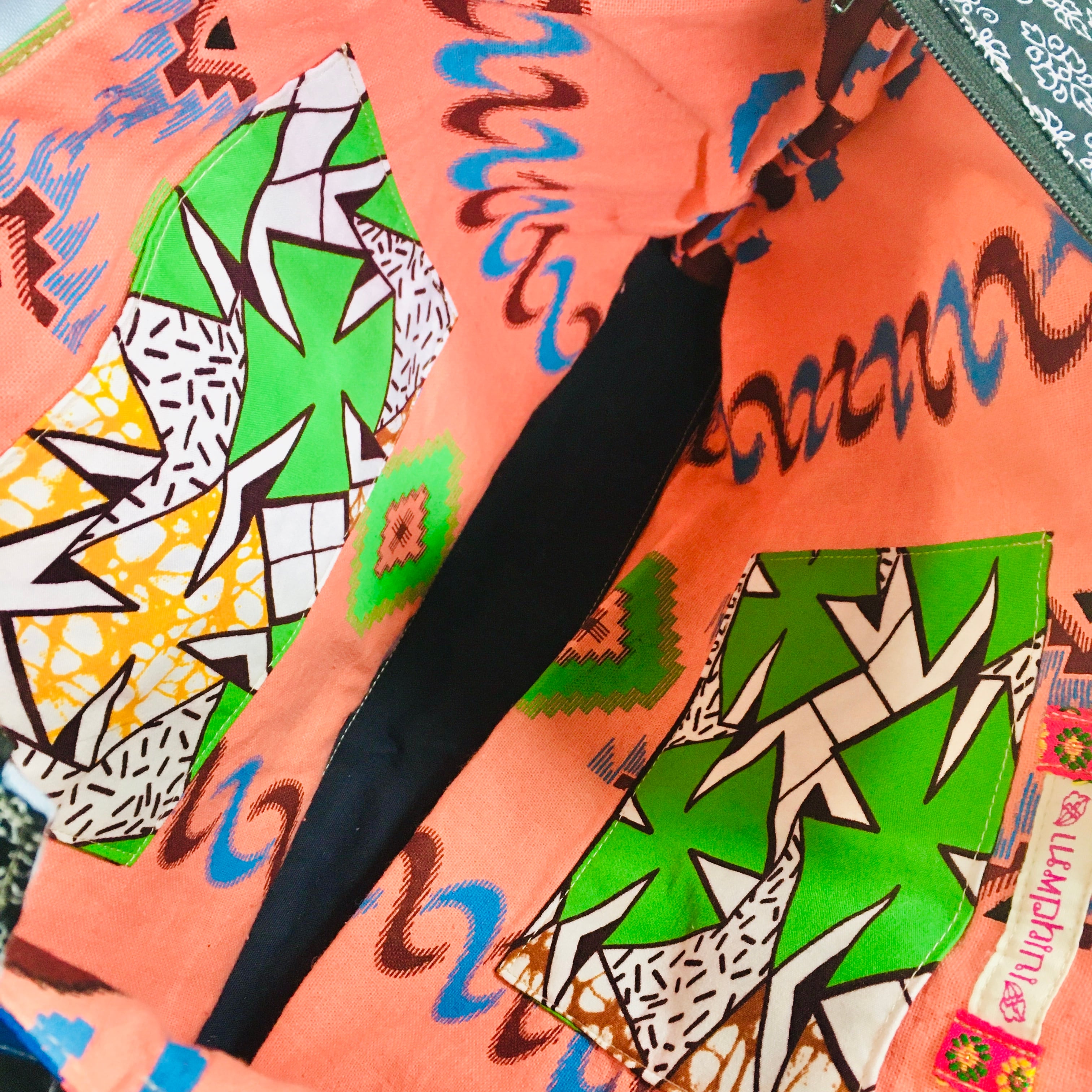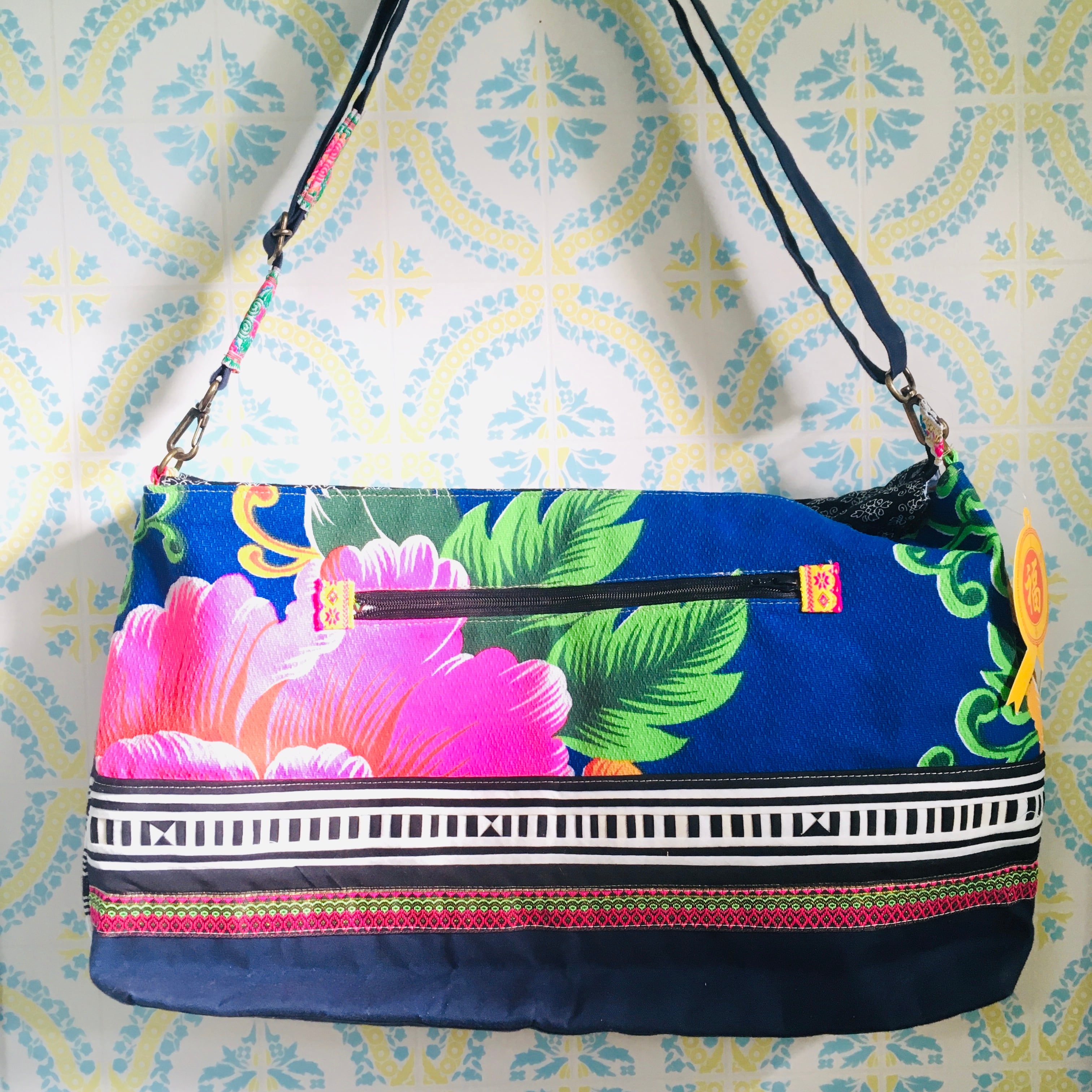 バッグ下部分の白黒柄生地はモン族のスカート生地を使用しています。