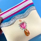 インドのかわいいカラーのリボンにハートビーズ、ビジューにカラフルで細かいお花ビーズ等を組み合わせて使っていて愛でたくなるようなイメージで製作しました!